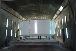 結(jié)構(gòu)件車間,具備大型結(jié)構(gòu)件的生產(chǎn)制造能力,設(shè)備覆蓋材料切割、卷軋、冷作裝配、焊接、熱處理、噴砂、油漆等。